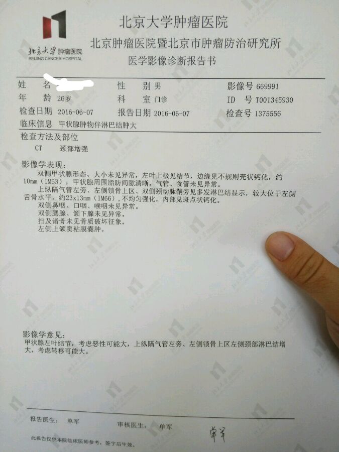 肺部照的是普通CT,报告说未见异常,不知道靠不靠谱。也不知道这种极见结节,直接转移到侧颈的严不严重