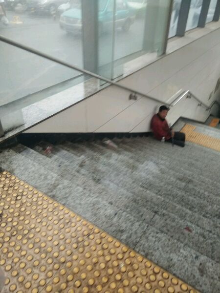 地下通道口偶遇一走丢的中年人。