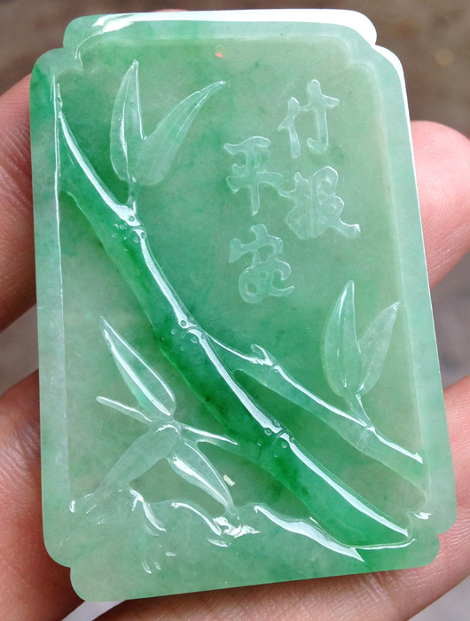 带绿色财神,种水不错,好看。尺寸:44.7/25.2/6.4 MM。价秒:7580【06051470】