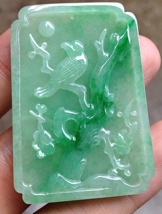 带绿色喜上眉肖,种水不错,好看。尺寸:49.3:35:5.4MM。价秒:6880 【06053464】