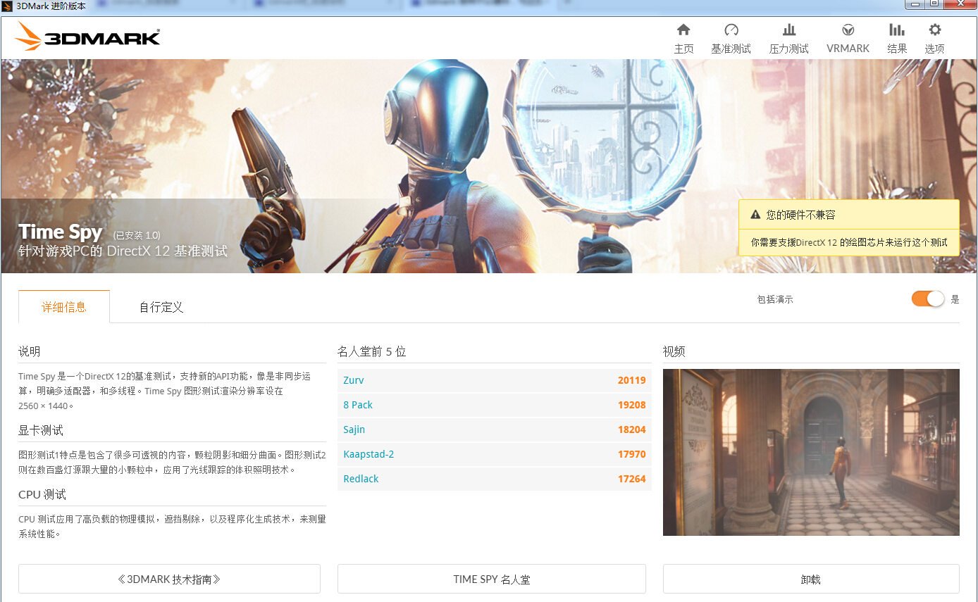 自己不可以发贴,借楼求助,新版正版TIME SPY提示这个