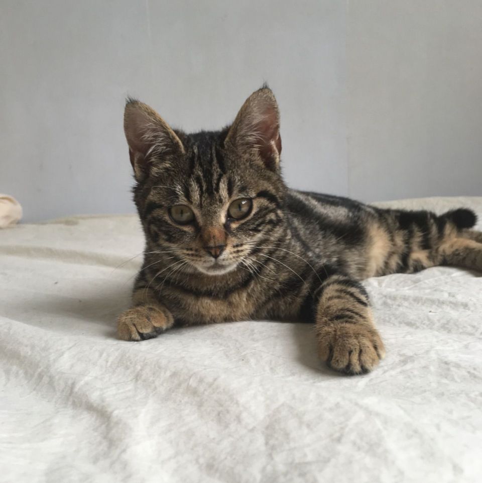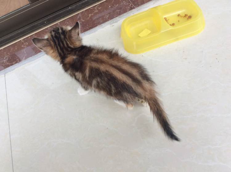大理石纹的土猫,还是个黄黑双颜色基因的母猫,还带点白基因