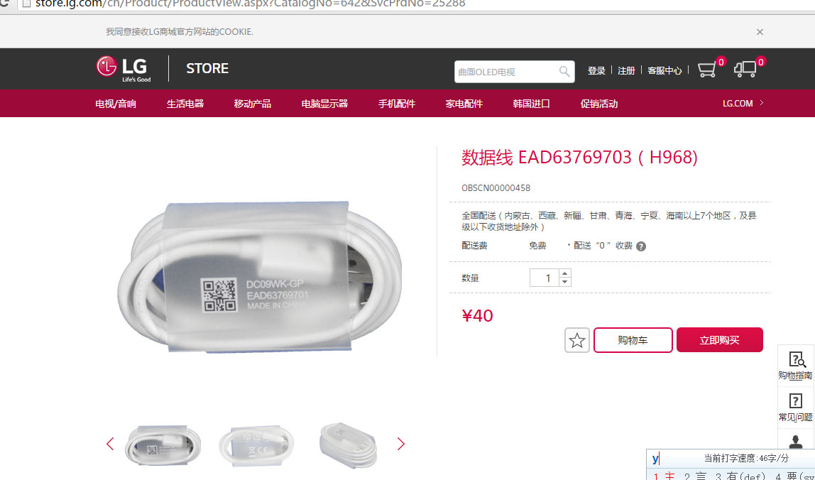 现在如果跟我一样有完美情节要买原装线的,现在可以了,那就是LG的官方商城有卖,40到40多一根,包快递,比淘宝贵,但正品保证适合满足相关人士。