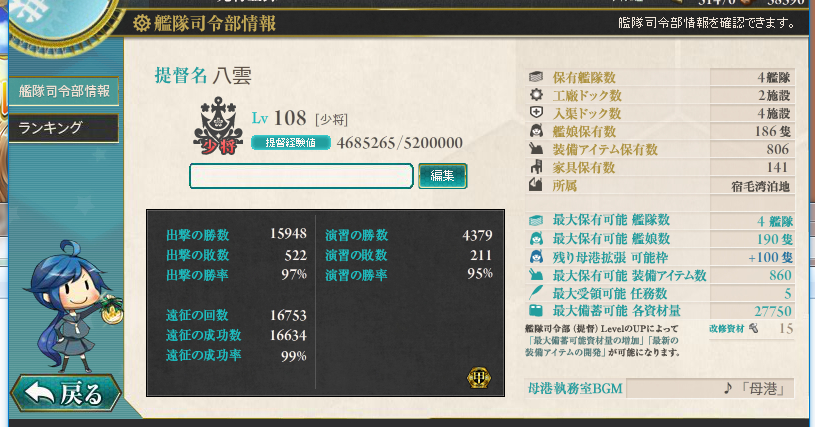 弃坑了出个很早就入坑的号,108级4修理190船位,船差亲潮401