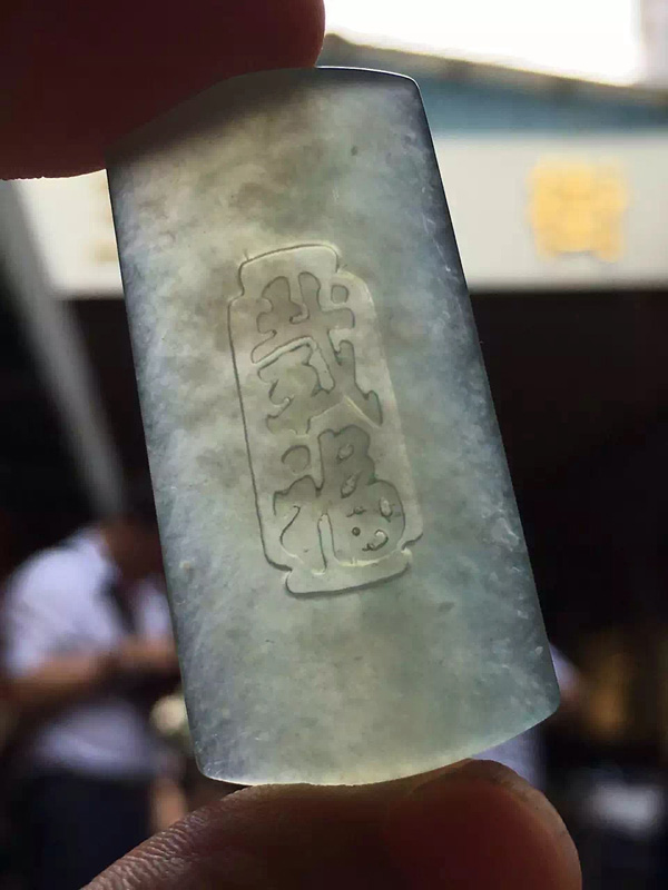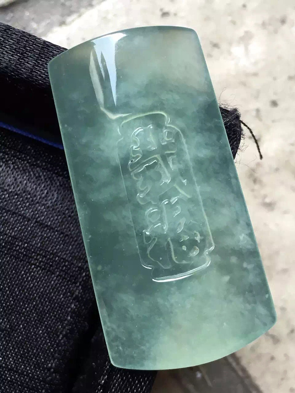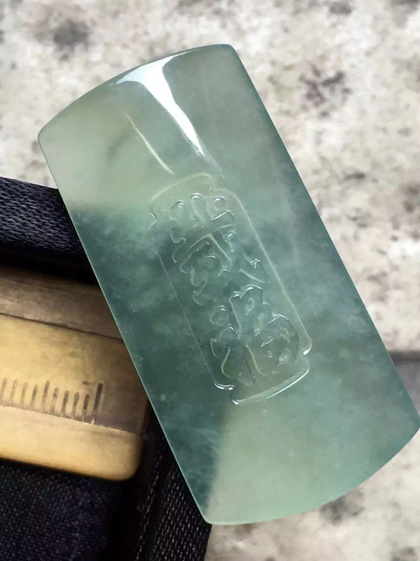 冰绿载福牌,种水通透,形体饱满好看,尺寸39.2*20.3*6.3。价秒:5980「06072456」