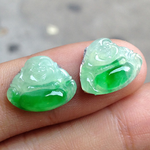 一对阳绿小佛公,种水不错,好看。尺寸:11.6、14.8、3.2/11.6、14.4、3.4MM。价秒:4480【06074840】
