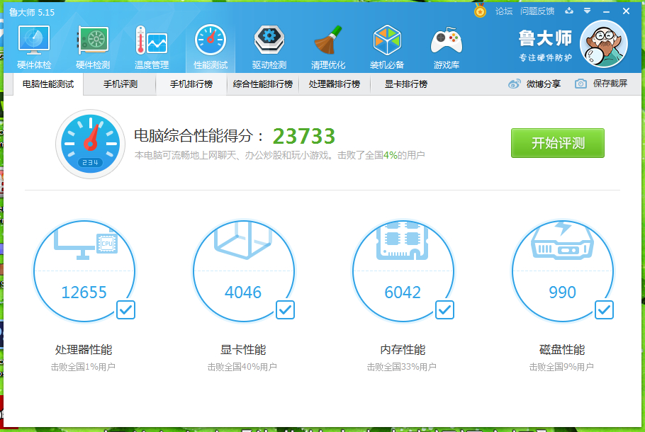 先发一张原来的配置以及鲁大师跑分