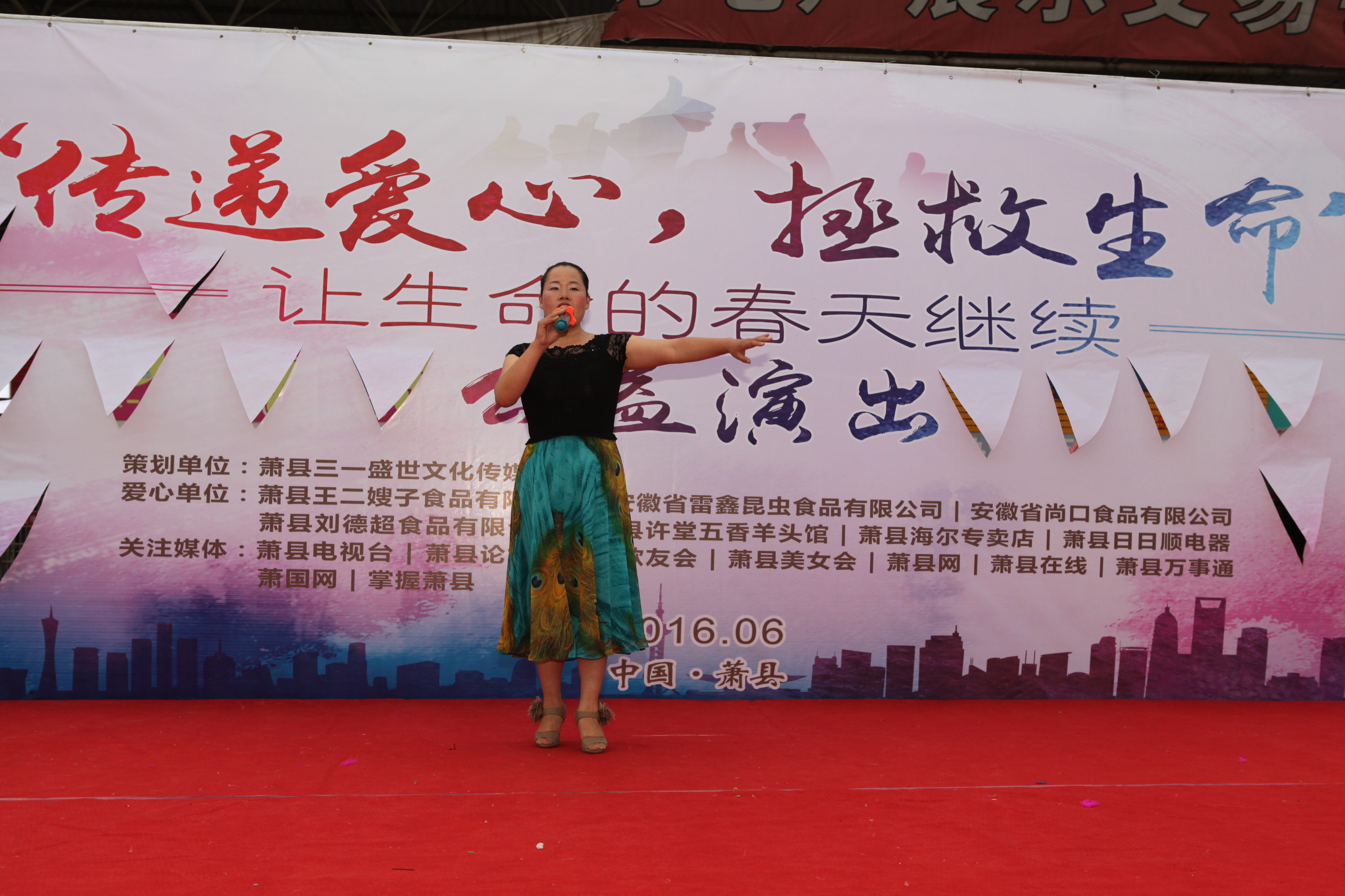 拂晓新闻网--皖北晨刊讯6月12日,以“传递爱心拯救生命”——救助“烧伤哥”陈灵彦的爱心公益演出在萧县体育场上演。本次活动是由萧县青年歌手陈琛精心策划的一次大型公益演出。陈琛歌友会的众多文艺志愿者积极参与义演,萧县多家爱心企业积极参加并慷慨解囊,共为“烧伤哥”义捐善款7376.60元。