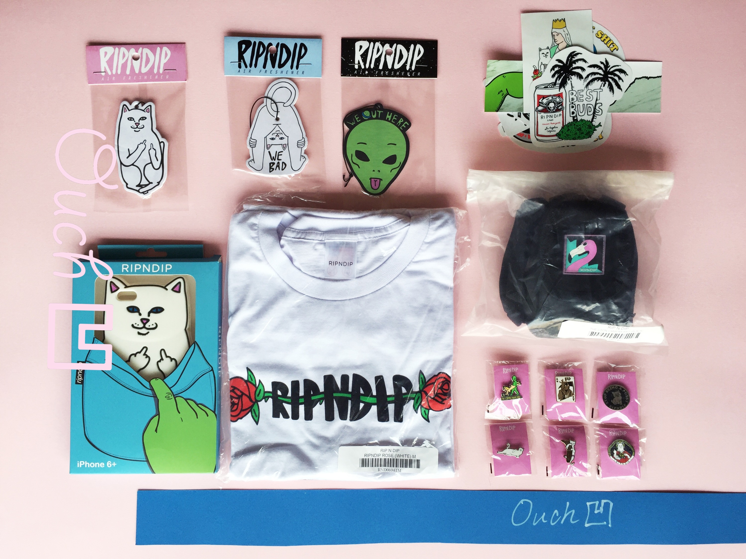 正好我们养了一只掉线的小加菲猫凹凹,又因为RIPNDIP去年的团队公路旅行的滑板视频,发现RIPNDIP既贱又污并跨界于艺术、文学、音乐的设计完全对我们的胃口。