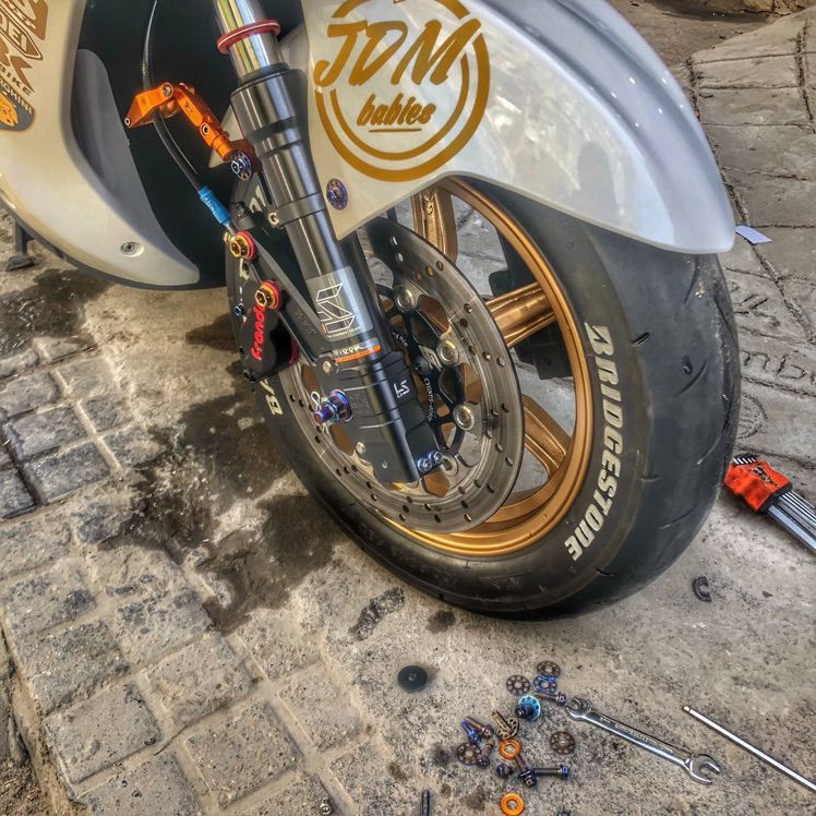 如图所示,东西保守95新,没有磕损,刹车片原厂的很厚,左卡右装。