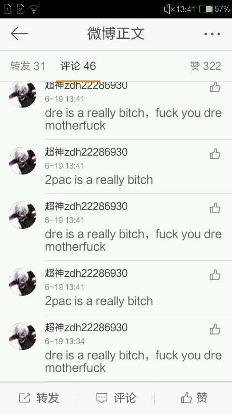 20160619【讨论聊天】刚刚有个sb在狗哥微博上喷pac dre 看我骂他