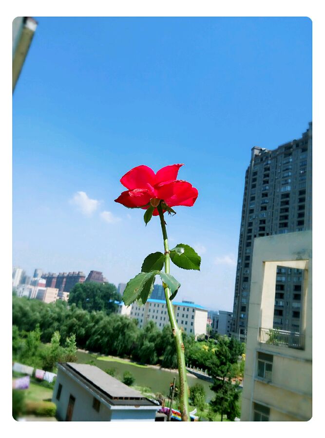 我住四楼,这是我侧着一半的身子伸出窗台上拍的,我也不想拍到房子,可我快要掉下去了💔💔