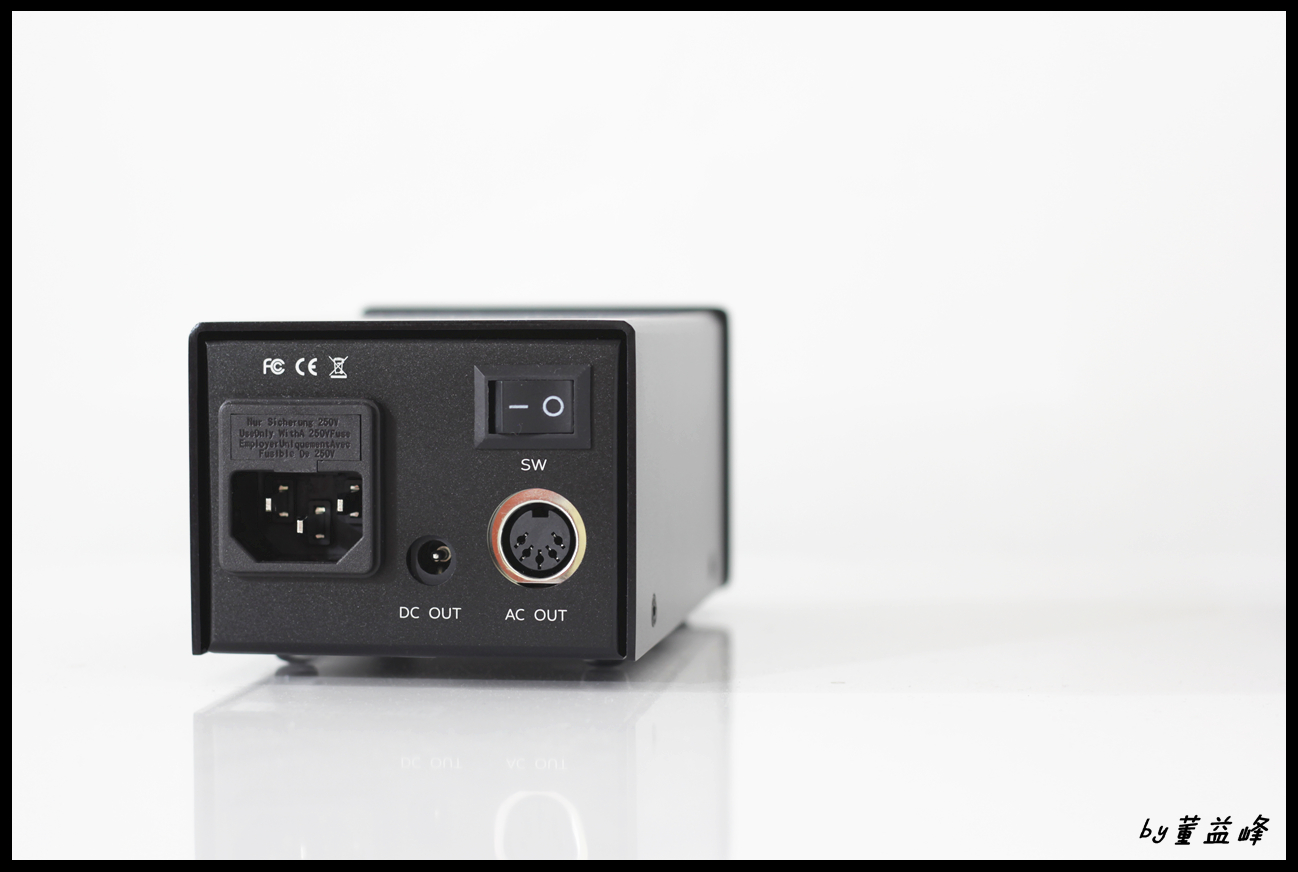 这是外置电源的背部图,做工什么的还是蛮工整的,拿在手里沉甸甸。颜色、造型什么的跟三件套都很搭配,如果是两个电源叠在一起就跟三件套差不多高度,看起来会很和谐!