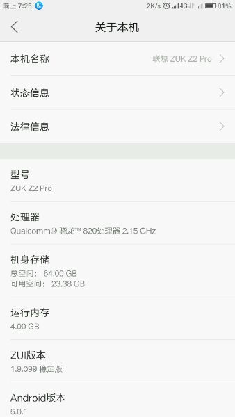 显示联想Zuk Z2 Pro