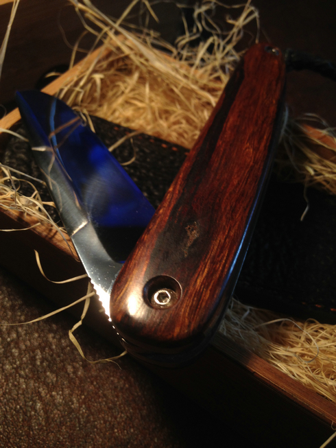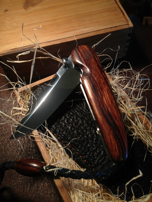 这是什么牌子的?挺漂亮的折刀!刀刃居中不?