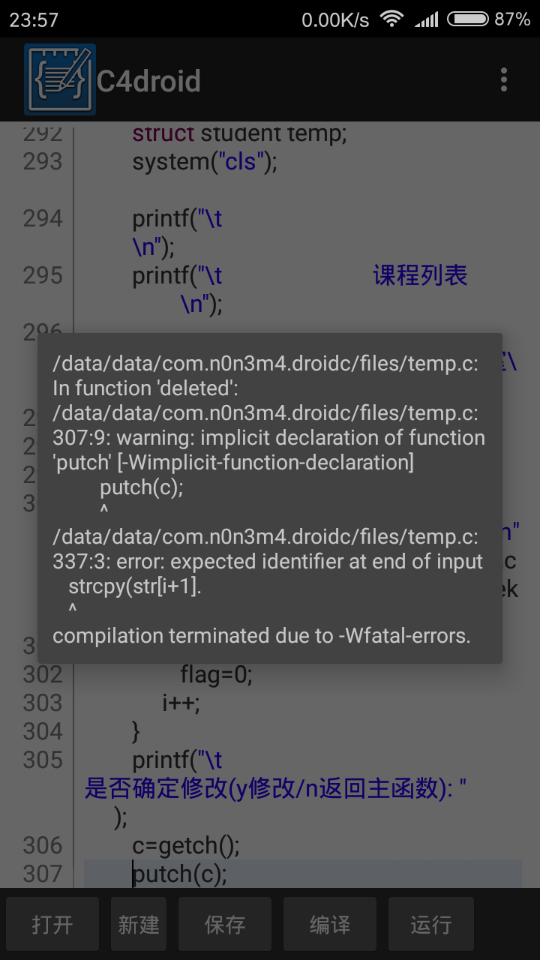 我能在电脑用Devc++运行,但是在手机上就运行不了,如图,怎么解决