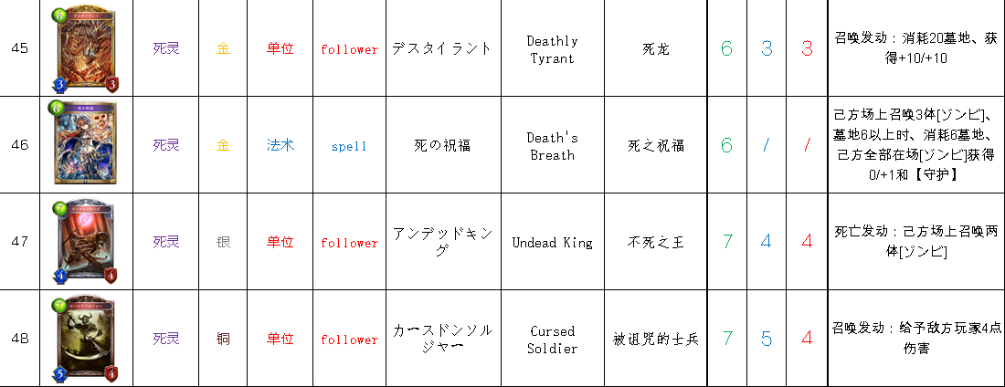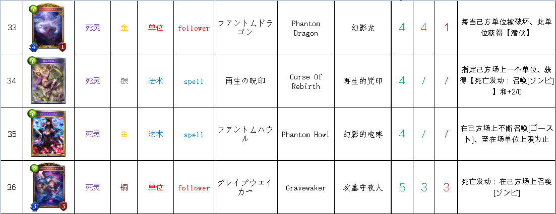 修正:編號5的卡:技能/法術說明修改為:每當消耗墓地、在己方場上召喚出「鬼魂」