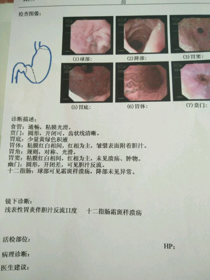 可是今年五月份感觉胃又有点不舒服了,还是照去年吃的药去吃。结果没有什么效果了,再次去医院做了胃镜,查出胃炎,胃十二支肠溃疡,并且加胆汁反流二度。现在中西药都在吃,还是不见好转。太后悔当初没有戒酒,说句实话我的胃基本就是喝酒喝坏的。