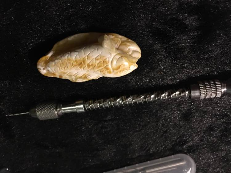 背面有点皮纹,再磨下,找到打孔工具先在前端打个孔