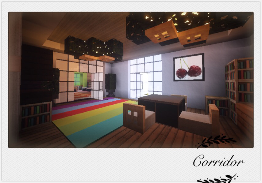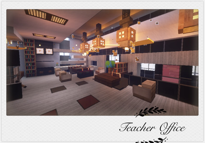 然后就是二楼的办公室 我还采用了一键命令方块的风扇和书桌 虽说光影下看得粒子效果有点奇怪 不过也无伤大雅