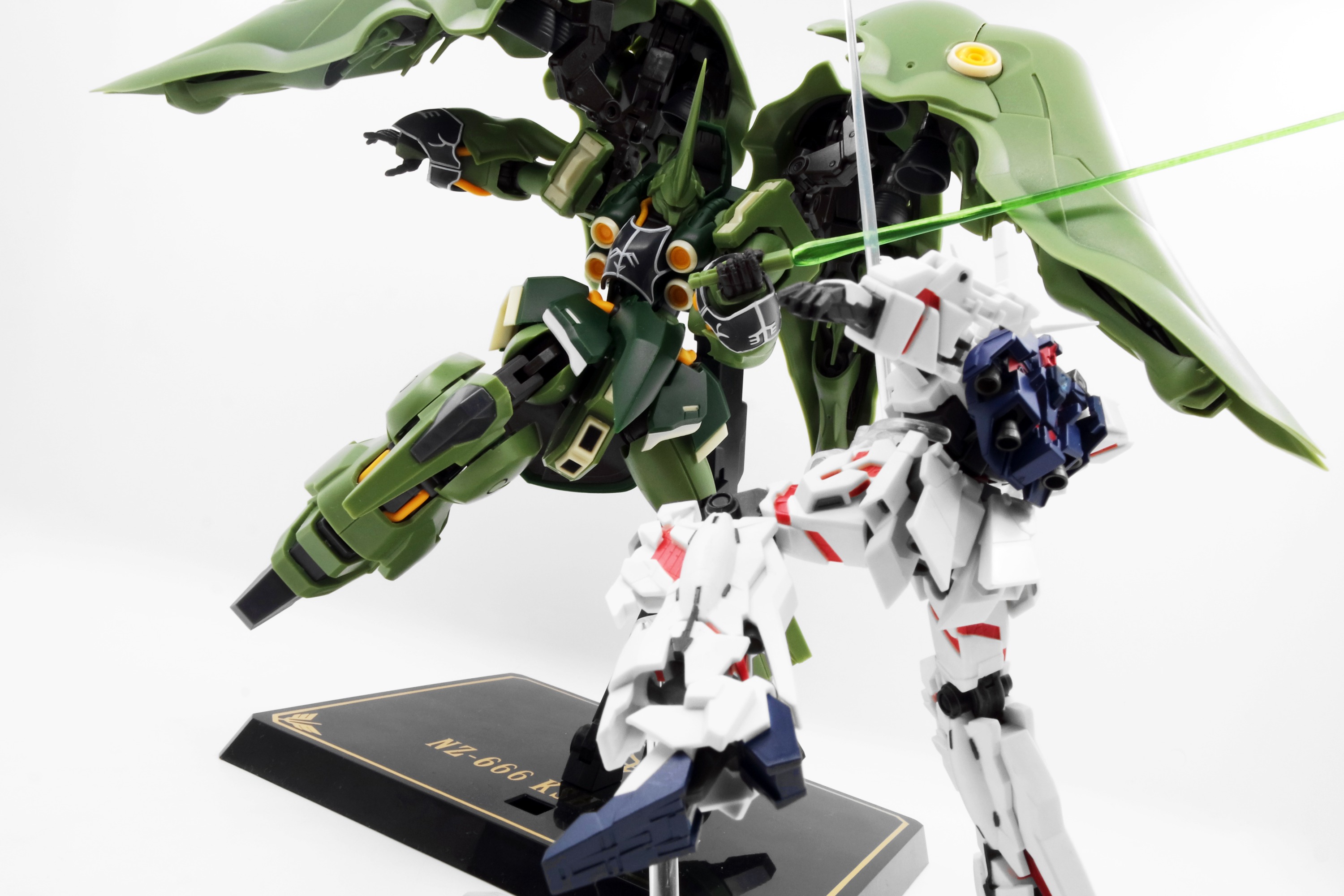 本期ROBOT魂展示继续MS系列,这次为大家带来《机动战士高达UC》中的主要机体-KSHATRIYA,NZ-666刹帝利是以NZ-000奎曼沙为基础开发的机体,虽然奎曼沙在融合大量功能的情况下已经小型化处理,但最终依然以40米的巨大尺寸徘徊与MS与MA之间,事实为一台从操作上到运用上都处于尴尬境地的机体,而NZ-666刹帝利则吸取前者的经验而进行重新设计,以机体小型化为目标实现了同规格武装和性能的还原,并引入外挂式多用途荚舱的设计而获得更多的功能,虽然机体被小型化 但却搭载了全规格的psycomu,所以对机师方面的要求是必须有极高的NT能力,作为NT量产的强化人-普露系列正是其最佳的驾驶员。造型方面,ROBOT魂确实比HGUC要更有线条优势,本身重型的装甲配搭上风骚的躯体线条确实别具一格,主体霸气有力,装上四枚羽翼后尽显华丽,配搭上专用支架更是特显气质,作为成品化的大型MS有着吸引人眼球的巨大体积。