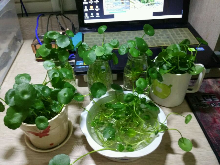 这些是暑假前的,结果回来都死了。还剩几根苗,我半土半水半个月就把根又培出来了,现在直接用来给龟龟的过滤用。花盆又培上红薯了。