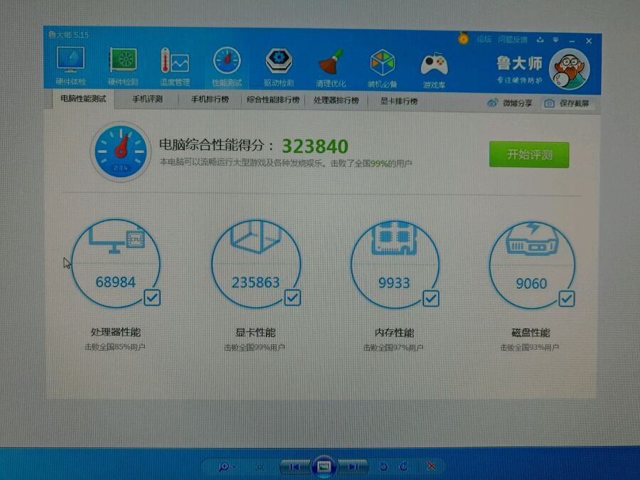打好官方驱动,先用鲁大师搞一波,默频23万,好像差不多哦