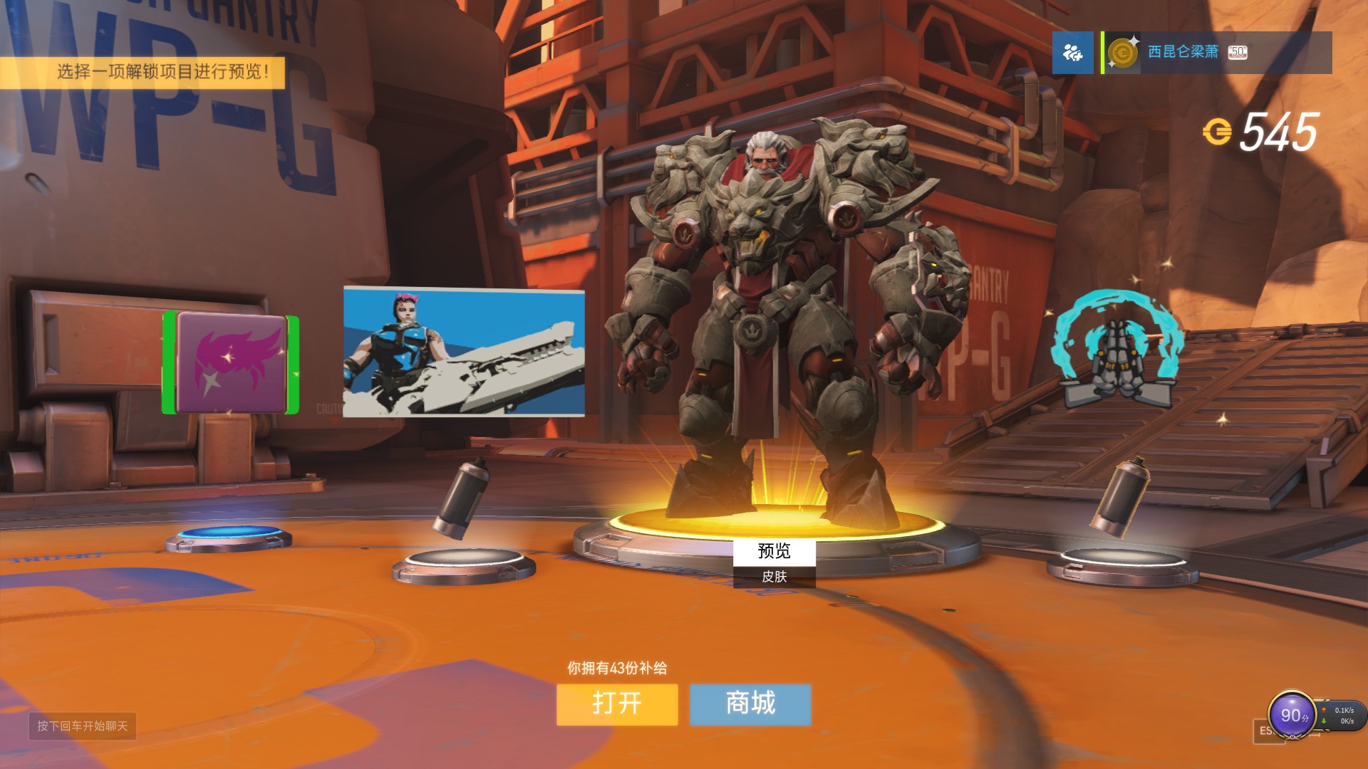 2个50包,出了8橙,其中1个变成500金币(紫色是150金币),出了个想要的堡垒还凑合吧,最坑的是2个源氏,我压根不会用的好吗