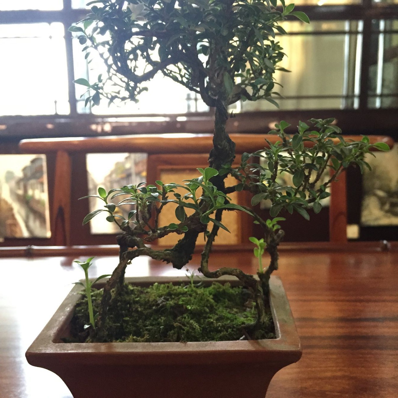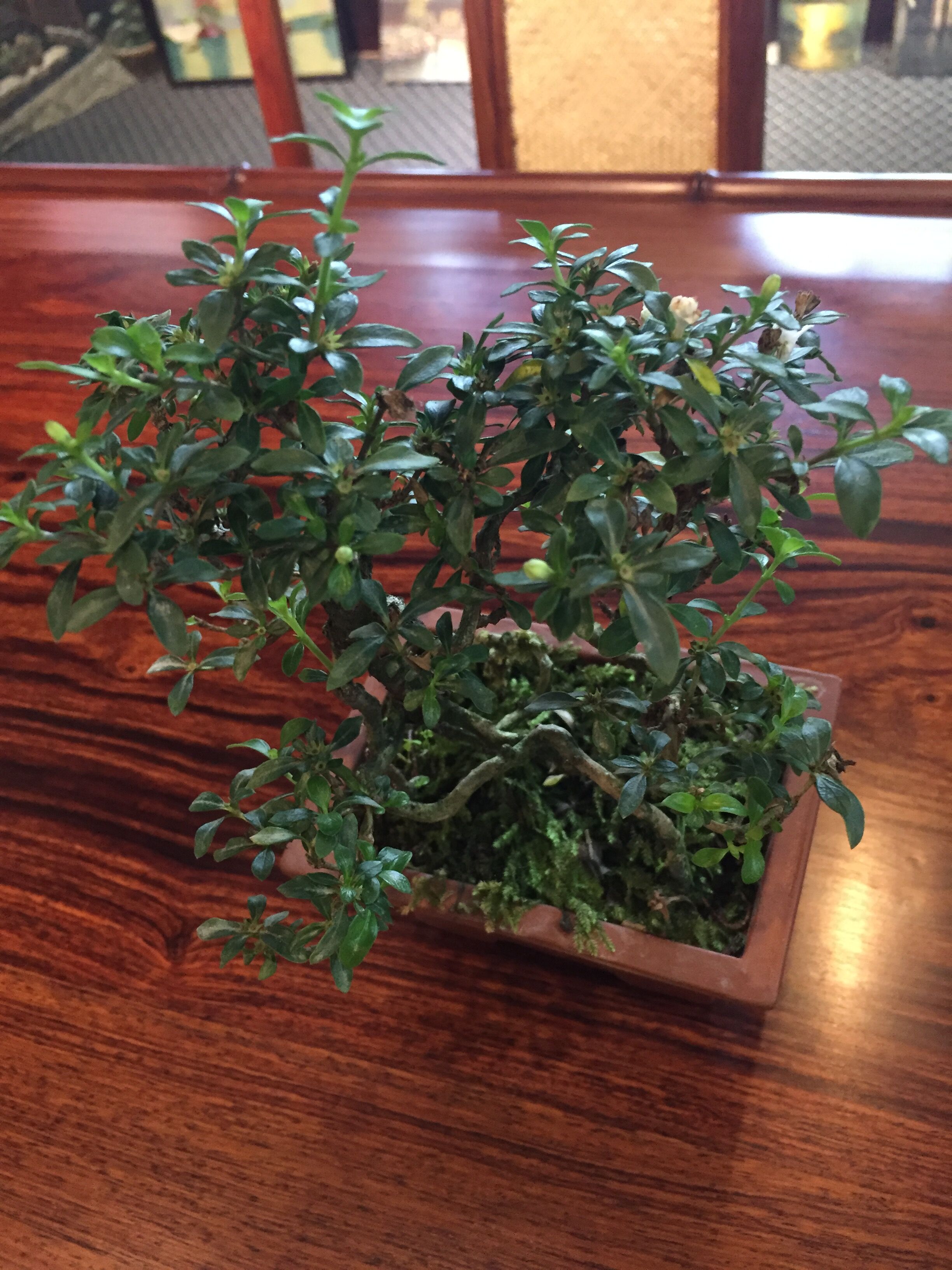 在苏州游玩的时候,去了一个私人住宅,看到一盆盆景,很是小巧,开白色小花,但忘记问名字,请问有大神知道这盆盆景的植物叫什么?不甚感激
