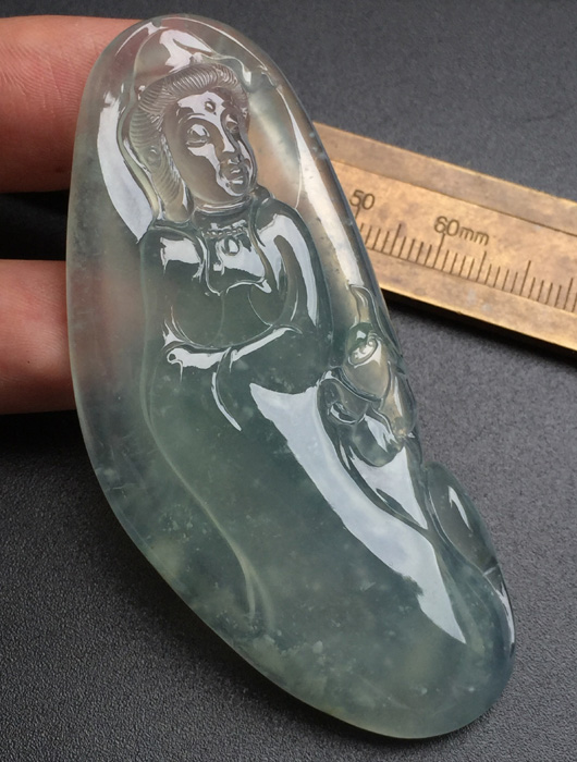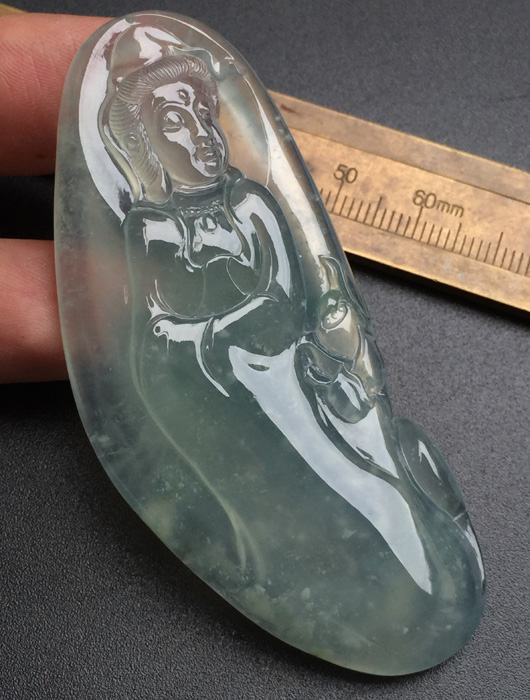 高冰观音,种水不错,通透起光,形体好看,品相佳,尺寸55、40.5、5.3,价秒:13800 【06150128】