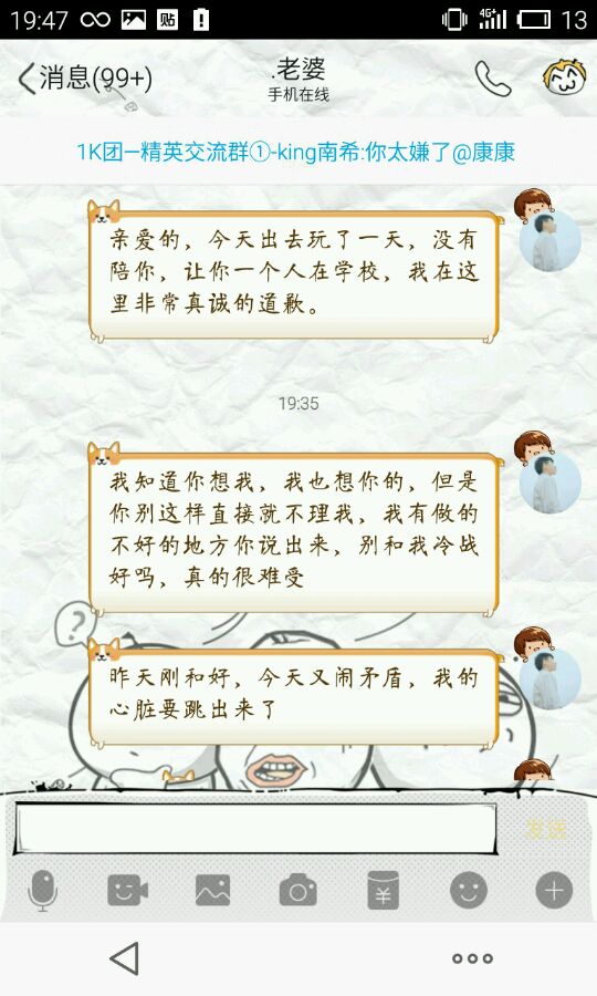 出去朋友聚会把女朋友扔下一天,还怪人家生气,真棒.