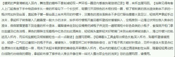这时您会发现一直萦绕着的低沉撩人嗓音来自一个清爽的小伙子.乐手沉迷于乐曲中.狂热不失优雅.调酒师旋着装着几盎司烈酒的调酒壶.舞伴是壶.跳一支醉人的舞.壶盖开启倾泻而出的不只是酒液.还有调酒师的用心和迷人的笑.