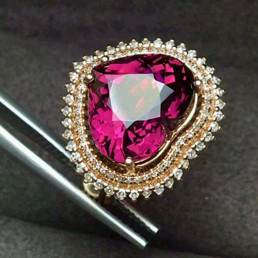 LC新款🆕天然碧玺[色]18k玫瑰金💍戒指➕南非钻石💎晶体超炫🌺、火彩🔥闪,附带证书📝、支持复检,赠精美礼盒🎁ps:不议价👈