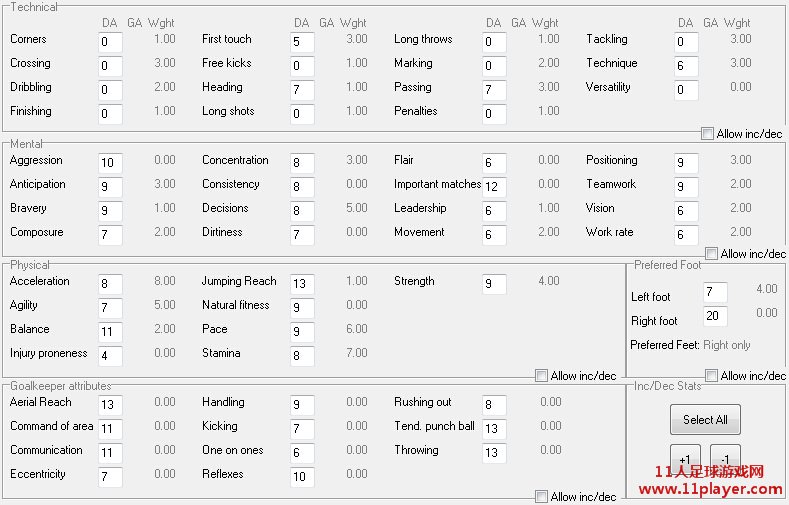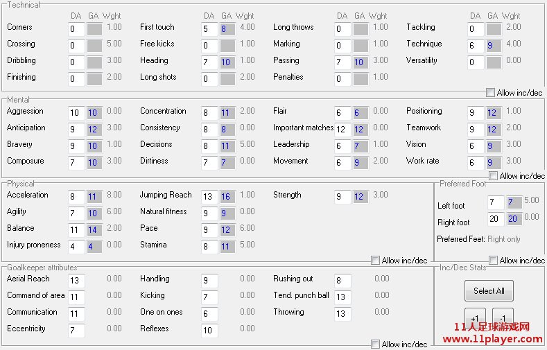 Wght是指基于该球员的位置,各个属性占CA多少的权重