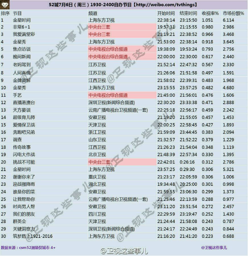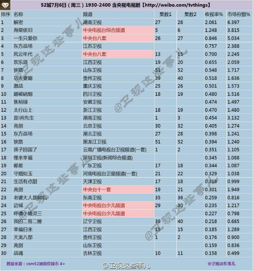 7.6日收视率汇总贴