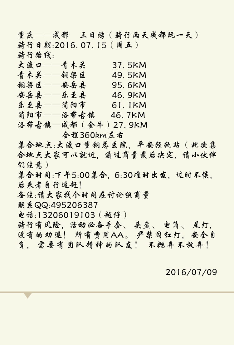 重庆骑行成都
