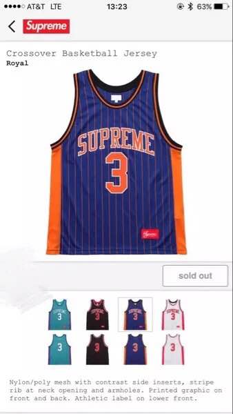 supreme 16ss 篮球服 蓝M