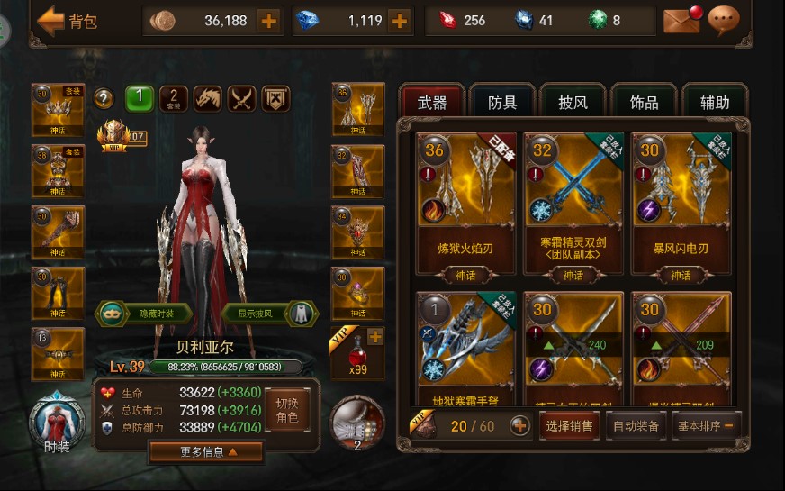 装备不好不差,面前过得去,所有的任务都差最后BOSS的3星级了。。
