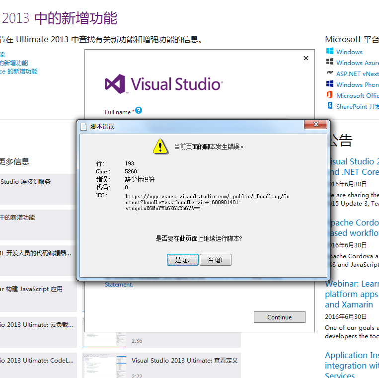 求助 Visual Studio 2013 登录界面脚本错误登录不了,求解