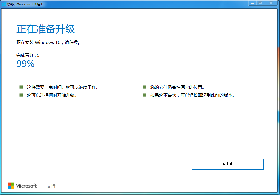 请问我升win10卡在99%有8个小时了,有知道如何处理的大神吗?