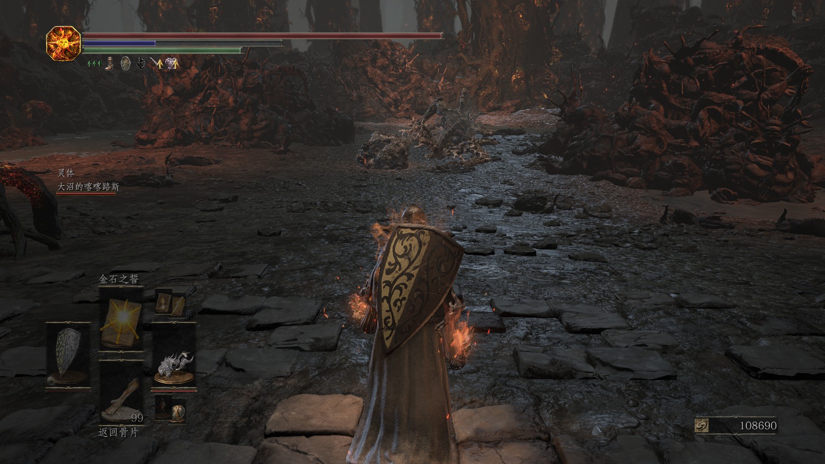 我翻滚流在这个boss上吃大亏了,开始为了洛骑打完霸王杀老王,结果我竟然傻到用火焰质变大剑打他,简直脑残,果断换龙纹盾加冰剑,结果还是了不少次才干死他