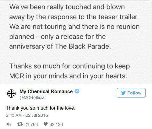 另外,MCR官方网站上,已经把过去宣布解散的消息删除了。