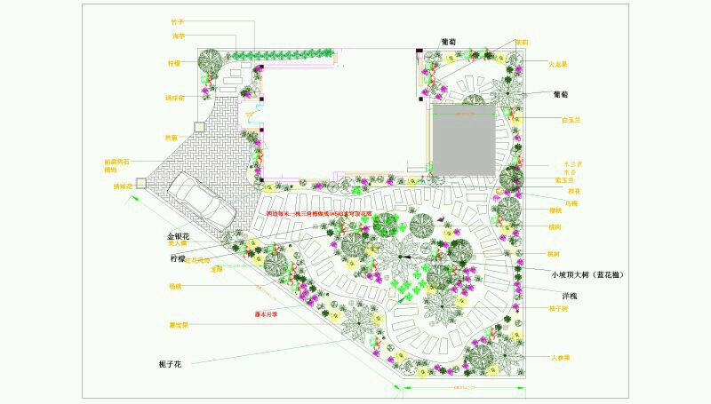 为了更实用,把设计师的设计作了一点调整:增加一个拱型花廊,下面铺上两条车道,作为备用停车位,花廊在紫藤、藤月和勒杜鹃(三角梅)之间选来选去,最后还是定下这边最贱的小三。