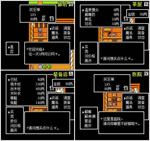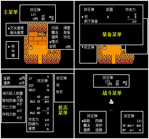 ③和《勇者斗恶龙》类似,主角HP较少界面会变绿,死亡后金钱会减半。