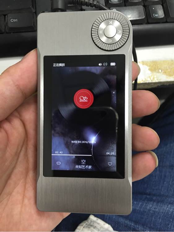 转盘确实有点儿松动,整体做工还行,个头比想象中要小的多,一手握刚好,没有音量键这点设计的不科学,音质比iPhone6s好的不是一点半点,但是声音开大有明显底噪,解析很牛。工作环境比较恶劣,没办法找个安静地方仔细品味,晚上回去拷些常听歌曲进去再感受一下