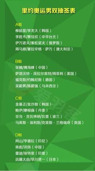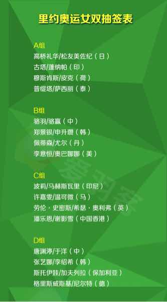 2016年里约奥运会羽毛球比赛抽签仪式已经结束,男单林丹和李宗伟同一个半区,林丹和谌龙会师决赛会是大家最希望的结果吗?。。其他项目结果如下: