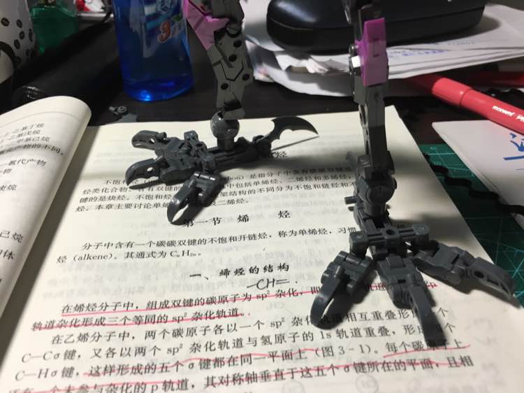 三款,白色灰色和我这款,这款膝盖,前胸后背头部,脚掌是紫色的,然后新骨架的取景器都是透明件,脸部安装方式也有所变化,更牢固
