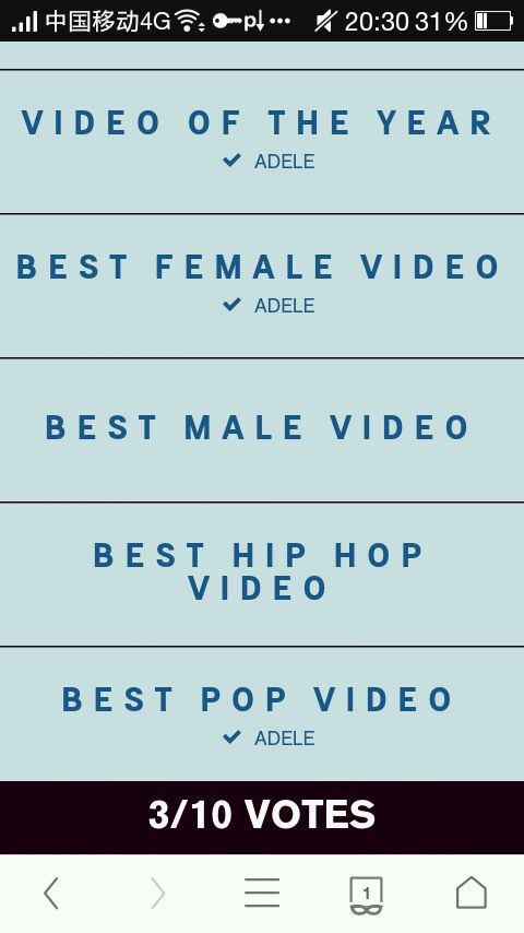 本届vma能投票的奖项还是不少,阿呆提名的8项中有3项能投票,分别是video of the year, best pop video以及best female video,不过得用美区IP才能投票,每人每天能投一次。虽说最终结果还是以评审为主,但是投票也不能输的太难看