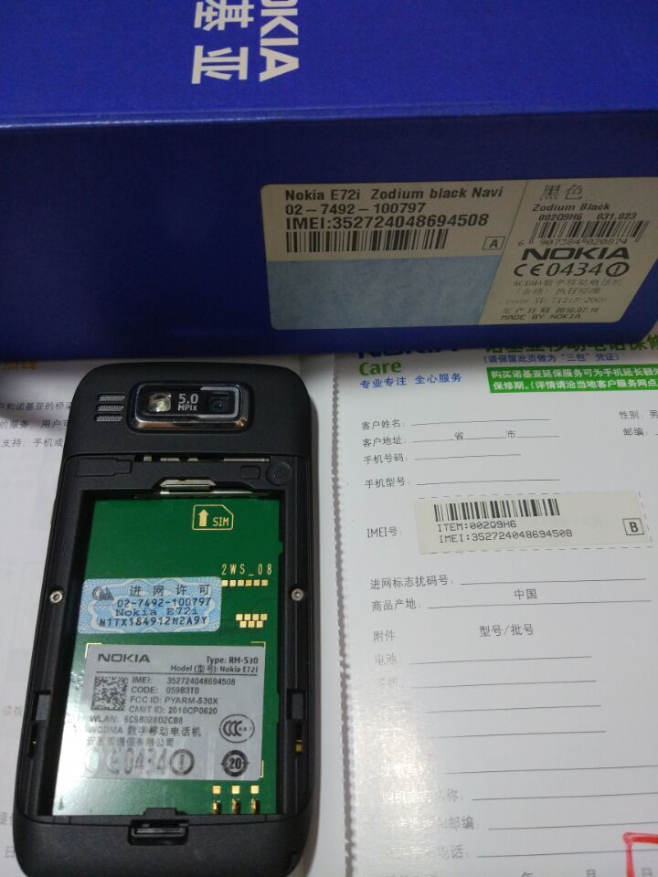 大全套诺基亚国行黑色E72I导航版 带盒子发*票 无修无进水