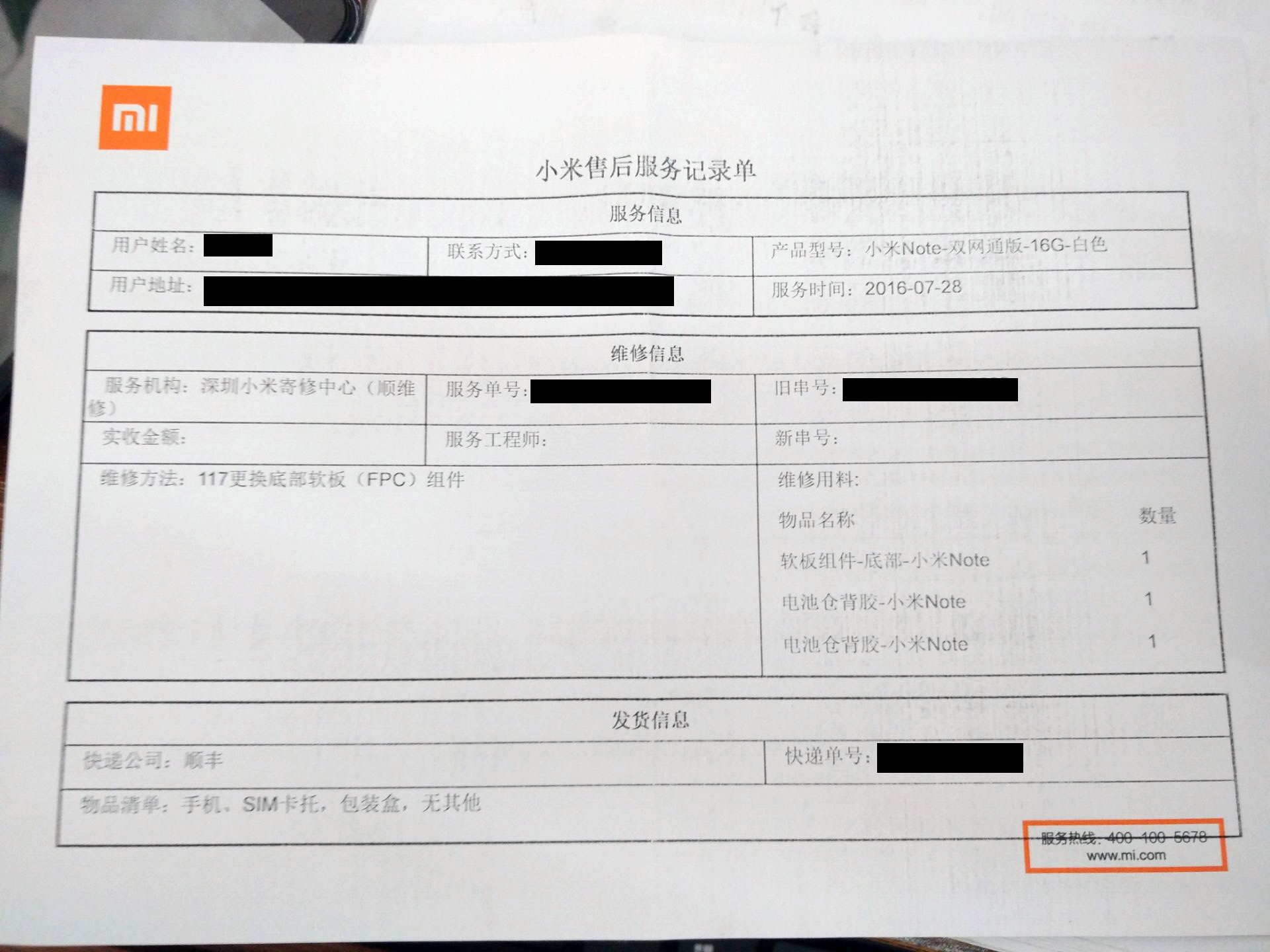 双11买的小米note刚刚维修好。。